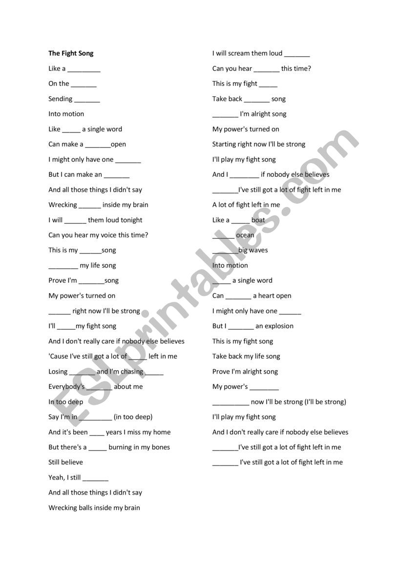 English Esl Song Fill In The Blanks Worksheets Most Downloaded 11 Results
