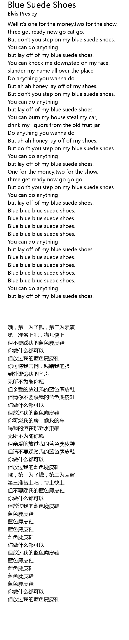 Blue Suede Shoes Lyrics Chords Elvis Presley Lyrics And Chords Blue Suede Shoes Elvis Presley