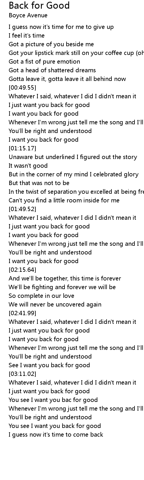 Back For Good Lyrics Follow Lyrics
