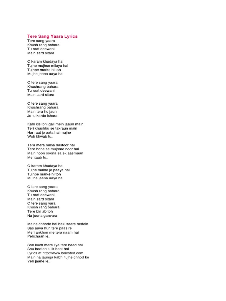 Tere Sang Yaara Lyrics In English Download Song Mp3 And Mp4 Wadeng Music